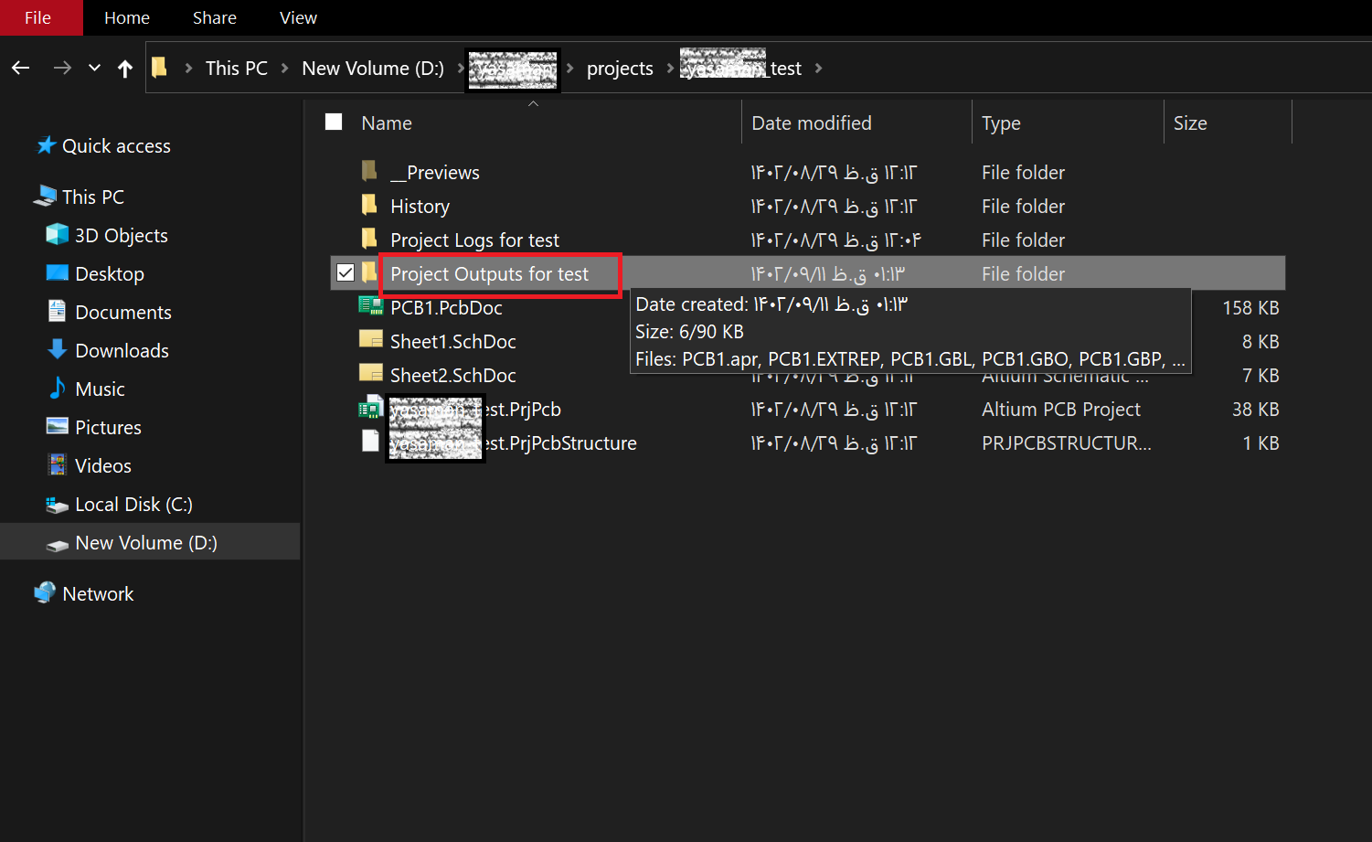 سپس تمامی فایل های ایجاد شده در فولدرProject Outputs (در محل ایجاد پروژه) را داخل فایل drl (در کنار فولدر gerber و stackup که در ابتدا گفته شد) کپی می کنیم.